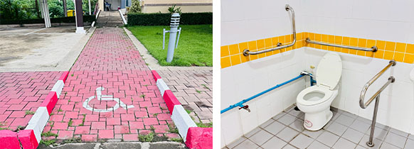 นิสิตพิการที่ผ่านการคัดเลือกจะได้รับทุนอุดหนุนค่าใช้จ่ายตลอดหลักสูตรจากกระทรวงการอุดมศึกษา วิทยาศาสตร์ วิจัยและนวัตกรรม ในปีการศึกษา 2566–2567 มีนิสิตพิการได้รับทุนรวม 9 คน ครอบคลุมหลายสาขาวิชา เช่น บัญชี เทคโนโลยีดิจิทัลเพื่อธุรกิจ และนิเทศศาสตร์ โดยในปีการศึกษา 2567 พบว่ามีบัณฑิตพิการ 3 คนมีงานทำแล้ว ทั้งในภาครัฐ เอกชน และธุรกิจส่วนตัว ซึ่งสะท้อนถึงความสำเร็จของการสนับสนุนเชิงระบบนอกจากนี้ มหาวิทยาลัยได้ปรับปรุงสิ่งอำนวยความสะดวก เช่น ห้องน้ำ ทางลาด ทางเดินราวจับ และลิฟต์ เพื่อให้ผู้พิการเข้าถึงทุกอาคารเรียน ห้องสมุด และพื้นที่บริการได้เท่าเทียม