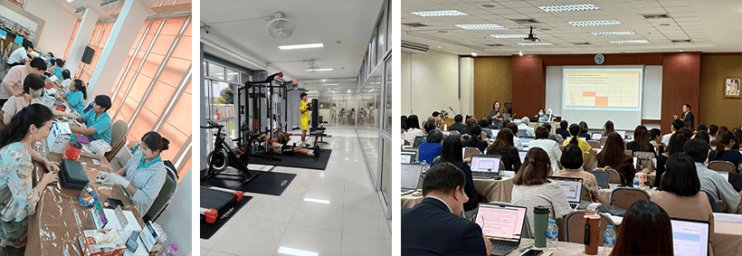 นอกจากการเติบโตในการทำงานมหาวิทยาลัยยังให้ความสำคัญด้านสุขภาวะ มีการจัดบริการห้องออกกำลังกาย จัดให้ความรู้ในการดูแลสุขภาพ และตรวจร่างกายประจำปี โดยไม่คิดค่าใช้จ่ายใดๆ เพิ่มความเป็นอยู่ที่ดี (Well-being) ให้กับอาจารย์และเจ้าหน้าที่ ซึ่งเป็นตัวขับเคลื่อนไปสู่มหาวิทยาลัยแห่งความสุข “Happy University”
