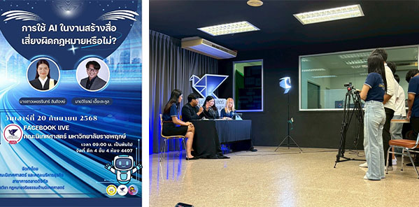 คณะนิเทศศาสตร์และคณะบริหารธุรกิจ มหาวิทยาลัยราชพฤกษ์ จัดเสวนาอบรมหัวข้อ “การใช้ AI ในงานสร้างสื่อเสี่ยงผิดกฎหมายหรือไม่” ให้กับนิสิต อาจารย์ และประชาชนทั่วไป โดยให้ความรู้ทางกฎหมายด้านเทคโนโลยีในเรื่องปัญญาประดิษฐ์ (AI) ผ่านการสตรีมในเพจเฟสบุ๊คของมหาวิทยาลัย เป็นการส่งเสริมหลักนิติธรรมในระดับชาติ และสร้างความเสมอภาคในการเข้าถึงข้อมูลอย่างเท่าเทียม เปิดพื้นที่ให้ผู้เข้าร่วมได้เรียนรู้และตั้งคำถามเกี่ยวกับจริยธรรมและกฎหมายในยุคดิจิทัล เกิดความโปร่งใส และเป็นการเสริมสร้างสถาบันในประเทศเพื่อป้องกันความรุนแรง