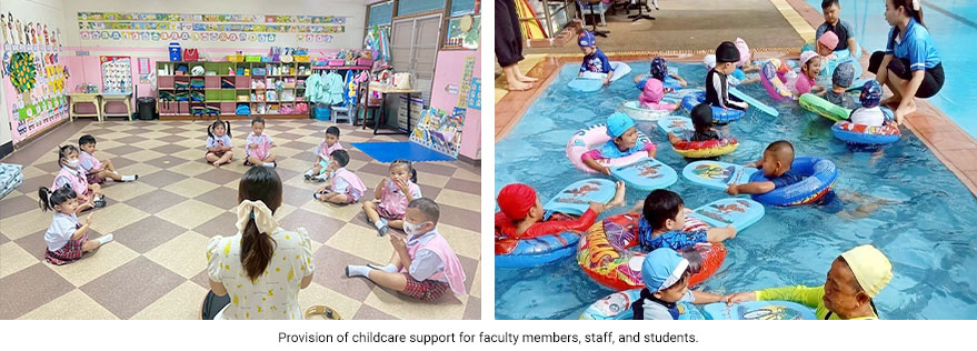 Rajapruk University recognizes the importance of supporting its employees and therefore provides accessible childcare services for staff and faculty through its affiliated school. These childcare arrangements ensure that personnel with young children can perform their duties on campus without disruption. In addition, the University offers financial assistance for employees’ children through the formally announced “Rajapruk University Personnel Children Scholarship, B.E. 2567 (2024)”, promoting equitable opportunities and enhancing staff well-being.