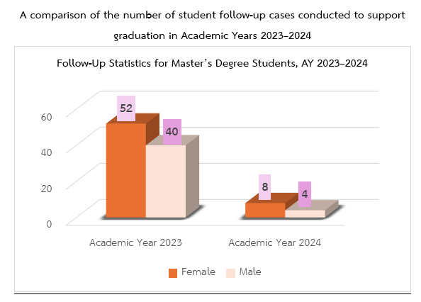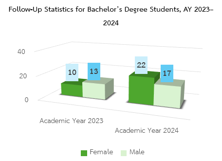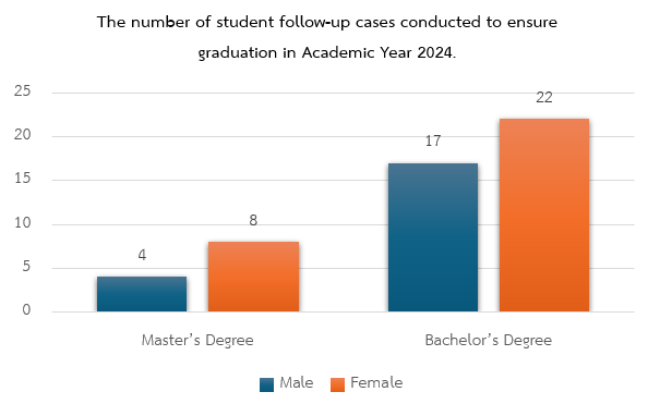 In addition, the University closely monitors female students who are at risk of not completing their studies according to the curriculum structure. The Registrar’s Office, academic advisors, and faculty members contact these students via phone or LINE to provide individualized guidance, academic planning, and follow-up support. These interventions have contributed to improved outcomes, with 51 students successfully completing their studies, including 30 female students and 21 male students